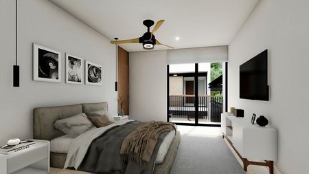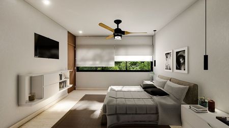 Con tres niveles que abrazan la elegancia y el confort, estas villas cuentan con dos habitaciones en la planta alta. Esto garantiza privacidad y espacio personal para todos los miembros de la familia. La distribución inteligente de estos espacios permite una convivencia armoniosa y la posibilidad de disfrutar cada rincón de tu hogar.