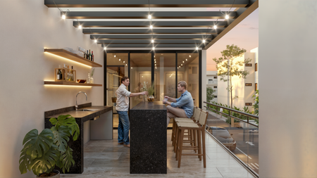 AMENIDADES: alberca, rooftop, game room, pet park, área de box, gimnasio, game room, cancha pádel, cowork, sala de lectura, salón de uso multiples con cocina.