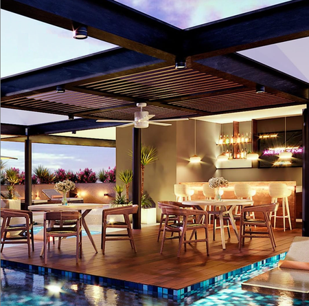AMENIDADES: sala de lectura, business center, rooftop, alberca, terraza con bar, jardín zen, pista para correr, gimnasio, coworking, área de yoga, zona grill.